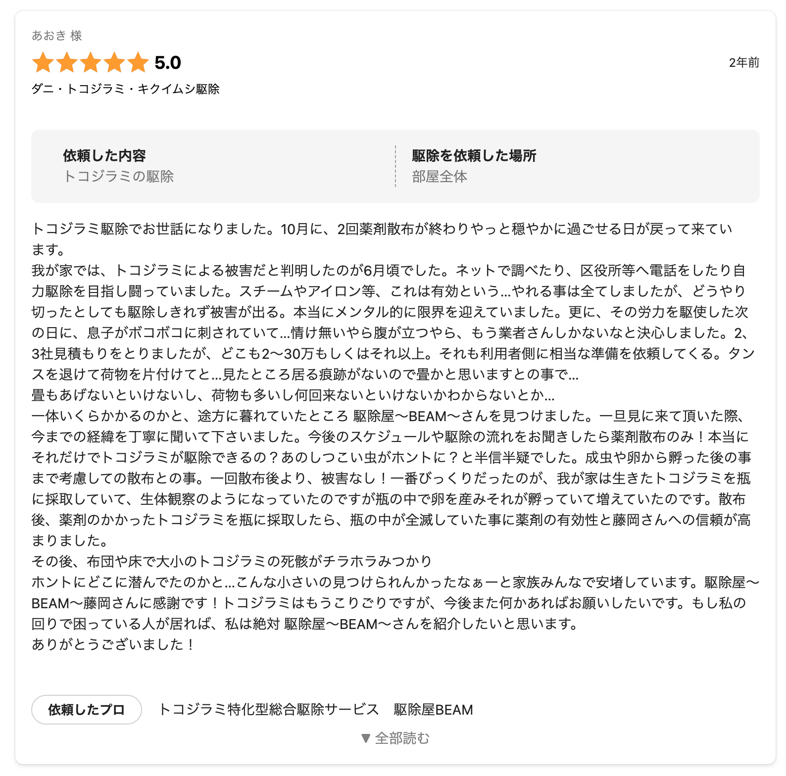 徹底駆除!弊社は独自の対策方法により5年間トコジラミを完全に駆除して参りました。